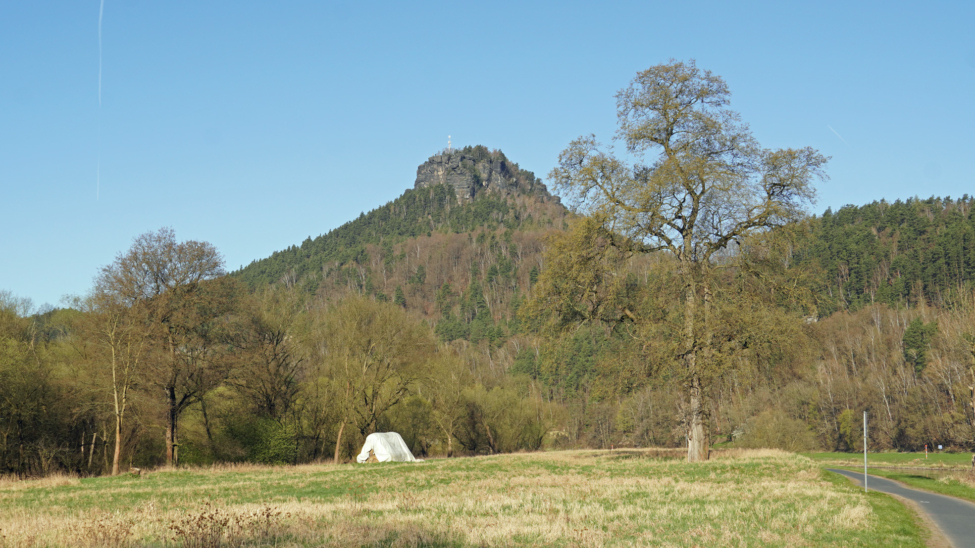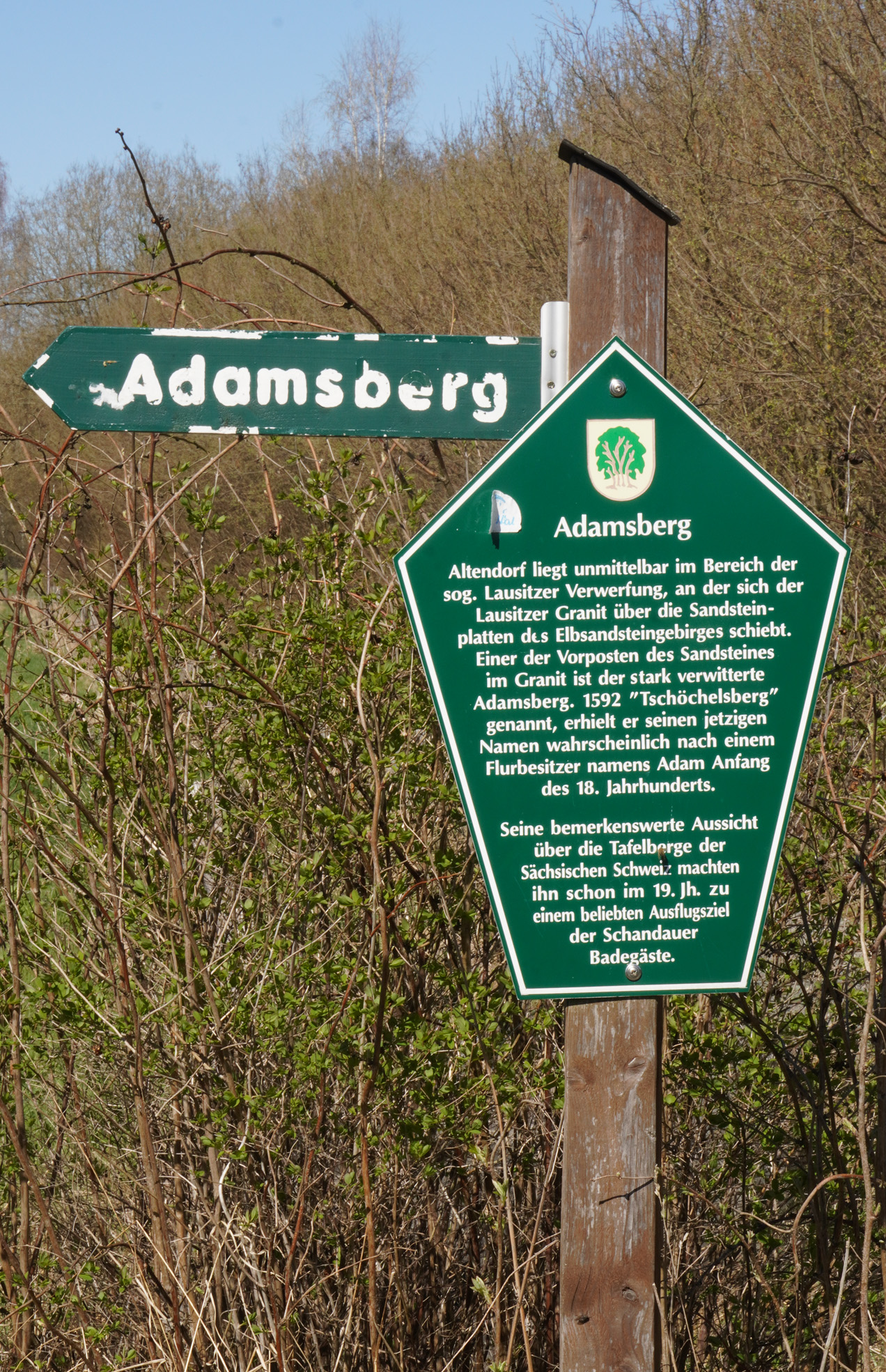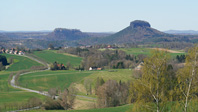 Die nächste Ortschaft war Mittelndorf und danach Altendorf. Nicht weit entfernt von Altendorf befindet sich der Adamsberg. Sehr hoch ist der Adamsberg nicht, aber von da oben hat man eine fantastische (beinahe 360 Grad) Rundum-Sicht. Wir waren allesamt begeistert und haben hier unsere Rast gemacht. Jürgen hatte noch jede Menge vom Bergtest übrig gebliebene Fettbemmen mit, die wahnsinnig gut geschmeckt haben. Jürgen ist übrigens der Erfinder des "Bergtest Wehlen". Guter Mann!!