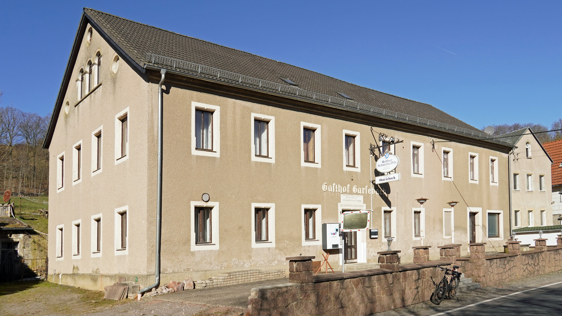 Die ehemalige Gaststätte in Garsebach (Triebischtal) fotografiere ich immer wieder gerne. Als ich noch ein junger Spund war (vor mindestens 54 Jahren) bin ich dort mal versackt. Es war auf einer Fahrradtour nach Leisnig, die Sonne brannte und die Hitze war unerträglich. Im Gasthof bin ich eingekehrt, habe mir ein großes Bier gegönnt und wollte dann weiter nach Leisnig radeln. Die Wirkung des Alkohols hatte ich leider nicht bedacht. Meine Kräfte sanken regelrecht in den Keller und ich weiß bis heute nicht, wie ich nach Leisnig gekommen bin. So war das früher. Das gabe es noch Bier für unter 18jährige!!