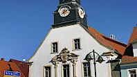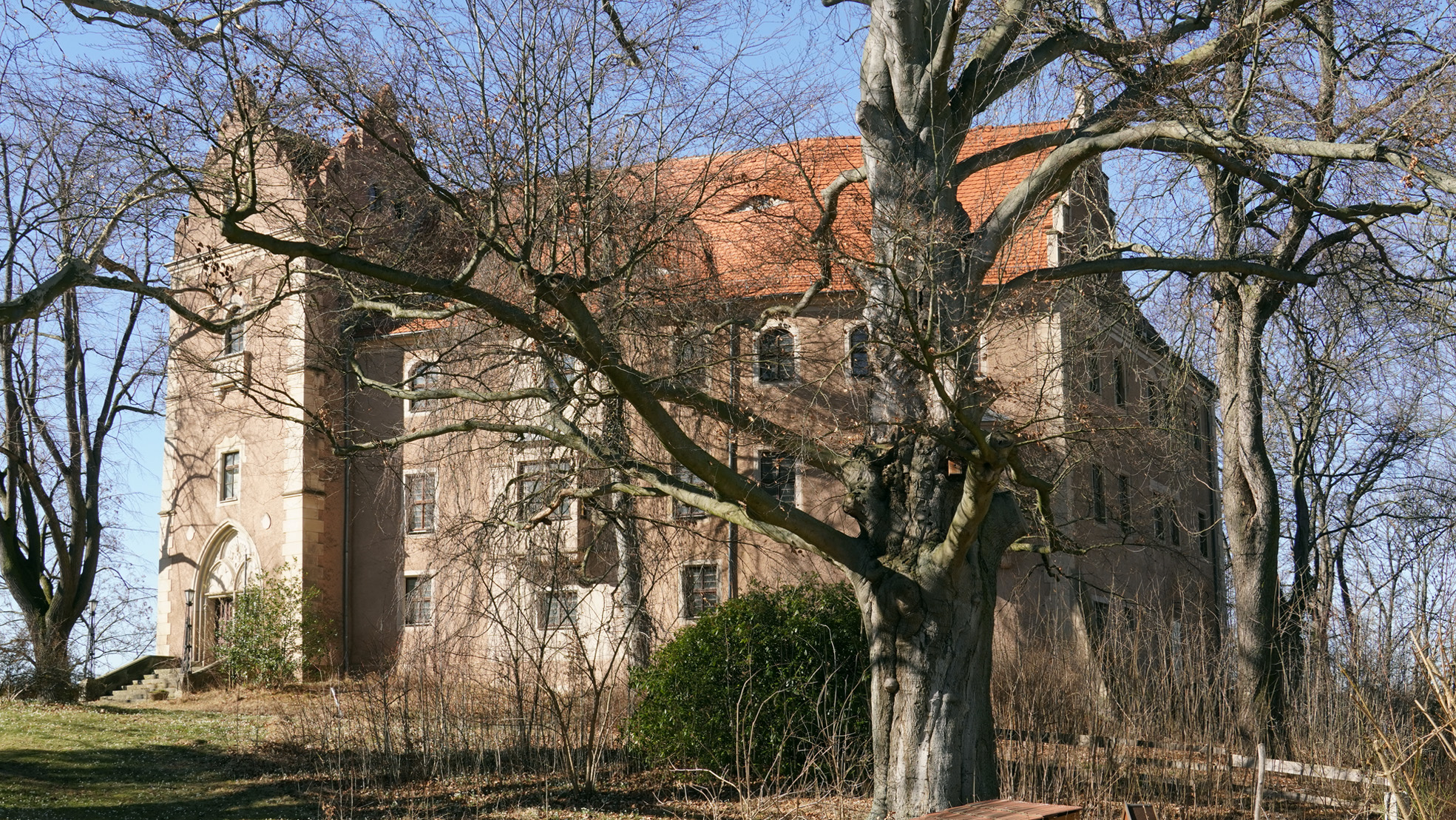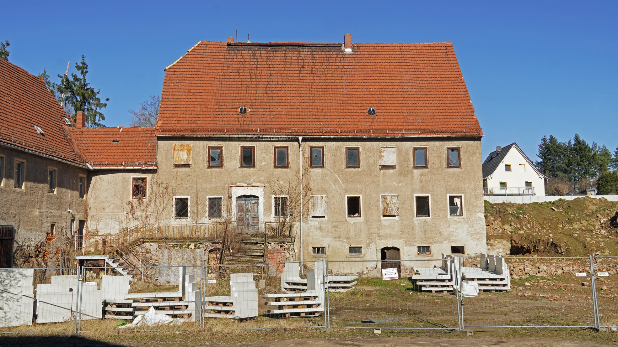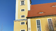 An der Kirche und dem Schloss in Taubenheim bin ich bisher immer nur vorbeigefahren. Heute habe ich mir die Bauwerke mal in Ruhe angeschaut. Viel weiß ich nicht über das Schloss. Es scheint in einem nicht so gutem Zustand zu sein. Wenigstens das Dach sieht relativ neu aus,